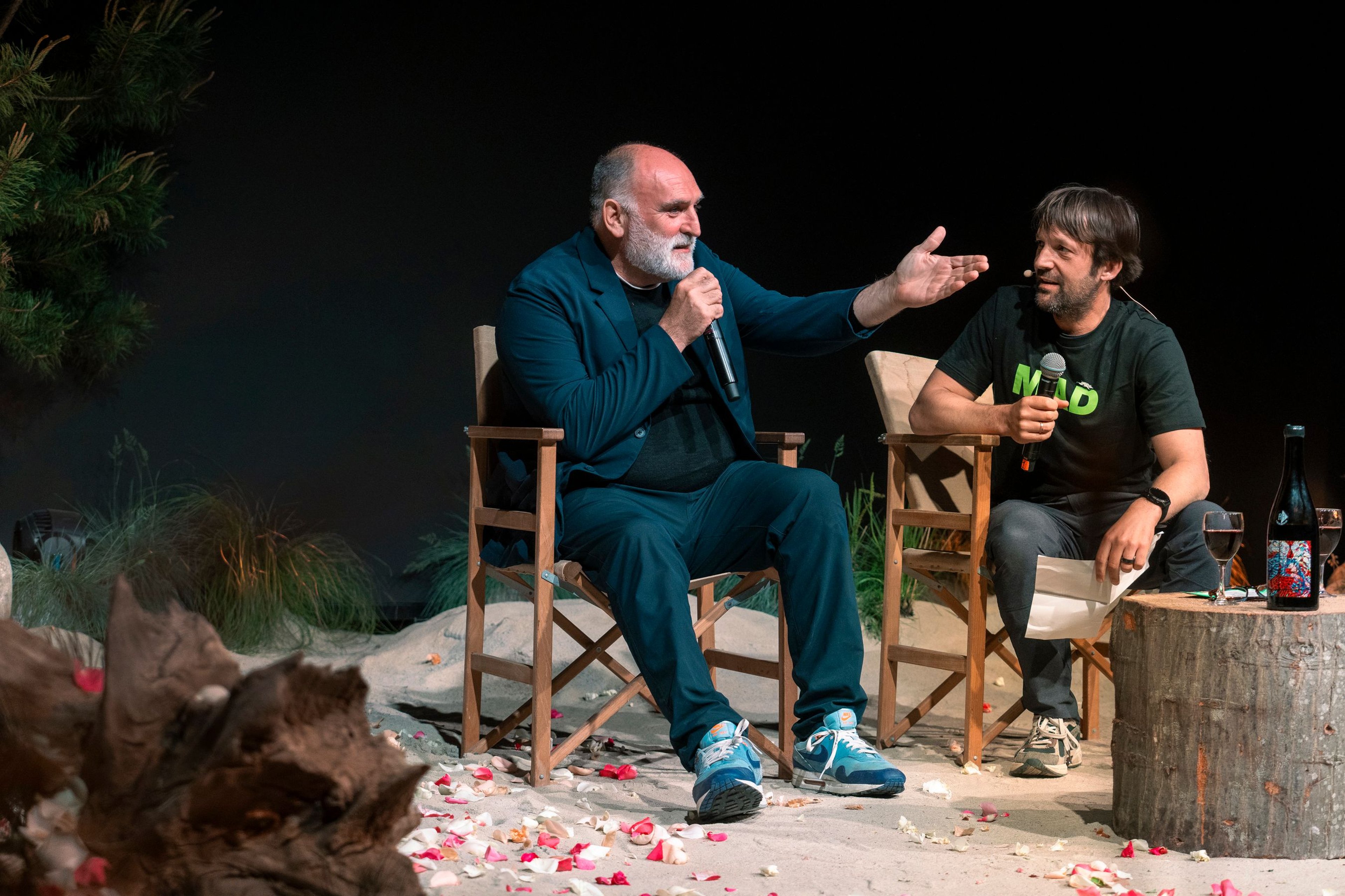 And so, on day one, we watched talks about how to be a better ancestor, about a son taking over a family restaurant and turning it into a new kind of destination. We watched Redzepi interview Thomas Keller – during which a MAD employee brought an actual goat out on stage to underline the idea that Keller is “the GOAT”. (Sleep, exercise and nutrition are key to success, Keller told us, which sounds very nice!)